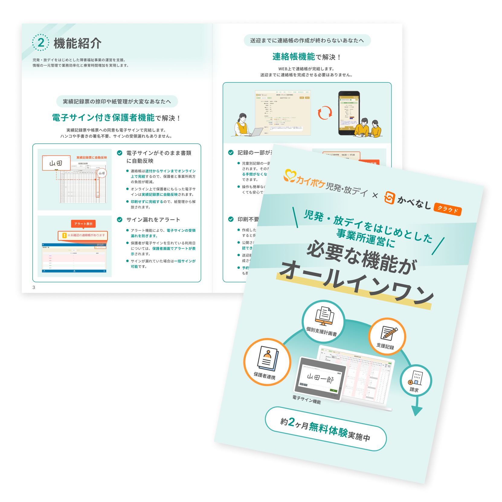 5領域に対応した個別支援計画や連絡帳が使える「かべなしクラウド」を+3,000円でご利用いただけます