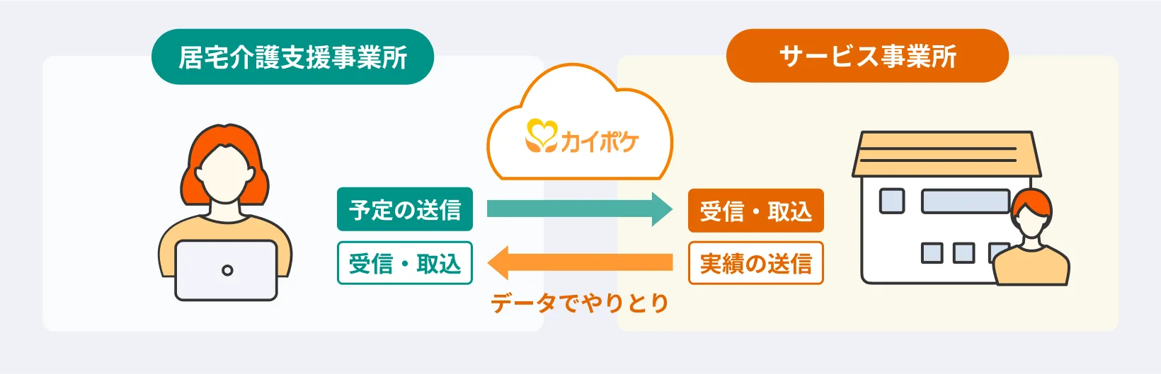 ※データ連携は、双方の事業所がカイポケ会員同士の場合に利用できる機能です。